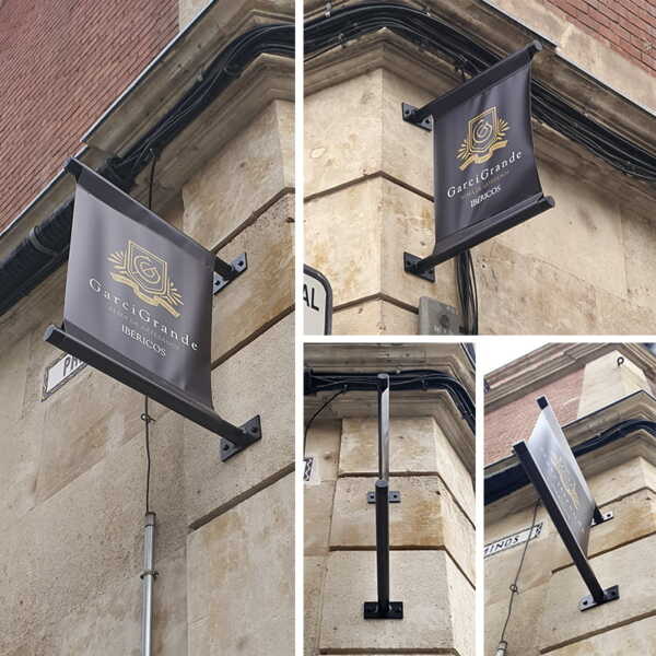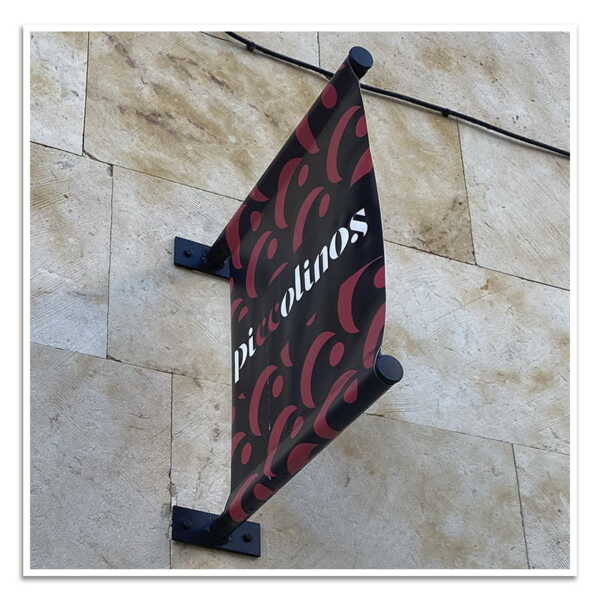 Banderola compuesta por 2 mástiles de hierro muy resistente + lona a doble cara impresa a todo color con tinta UV con calidad fotográfica + tornillería para su colocación.