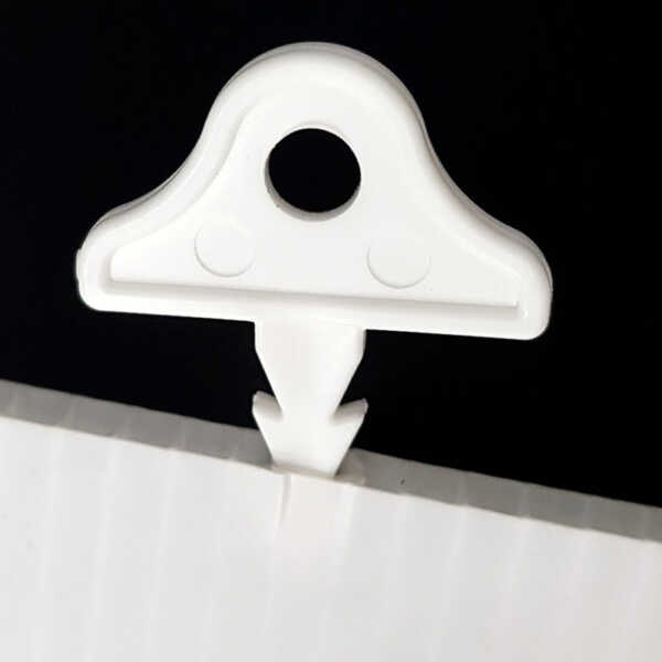 Basta con presionar el colgador con el borde del material y listo para colocar.