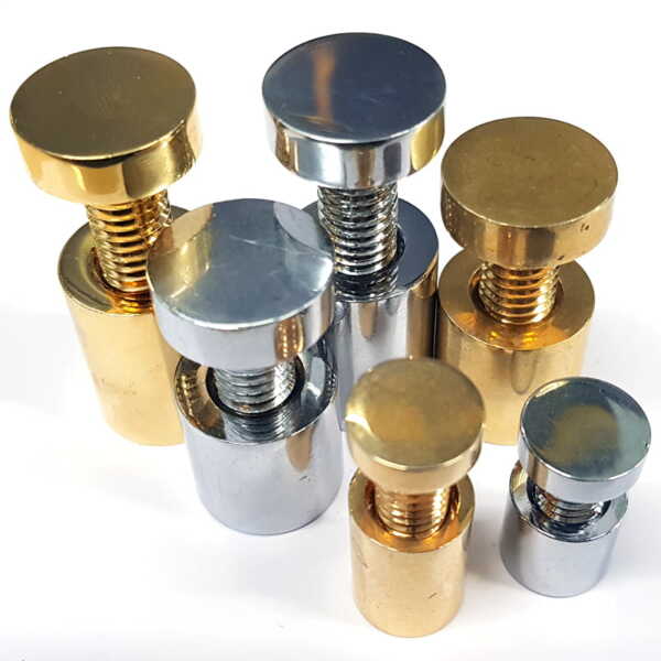 Separadores para Placas son un sistema de fijación a la pared para señalización con acabado Plateado y/o Dorado