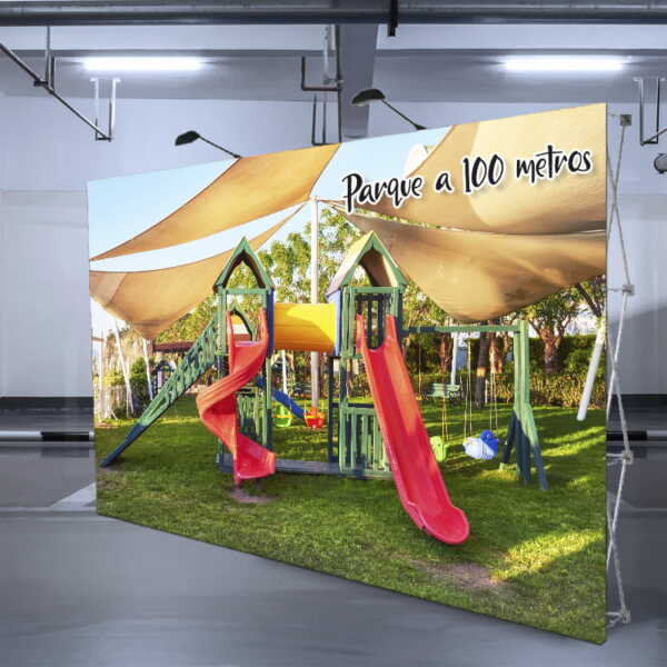 En menos de 3 minutos una persona puede desplegar la estructura y colocar la tela impresa por mediación del velcro que viene cosido en todo el perímetro.
