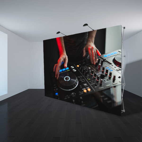 La tela sobre que va impresa la gráfica es un material opaco (no se ve lo que hay detrás del photocall cuando existe una fuente de luz en la parte trasera)