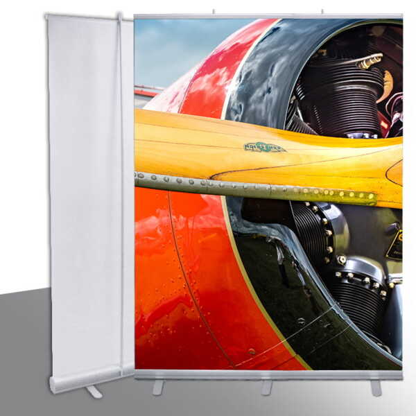 Se diferencia de su «hermano» el roll-up standard en la estructura y el soporte de la gráfica que vienen más reforzados y de mejor calidad.
