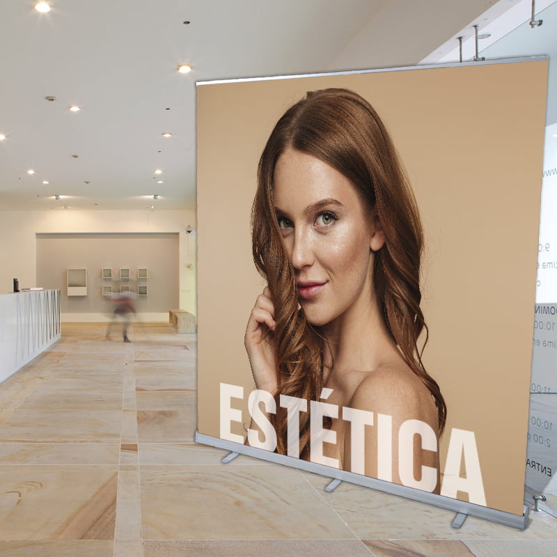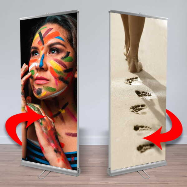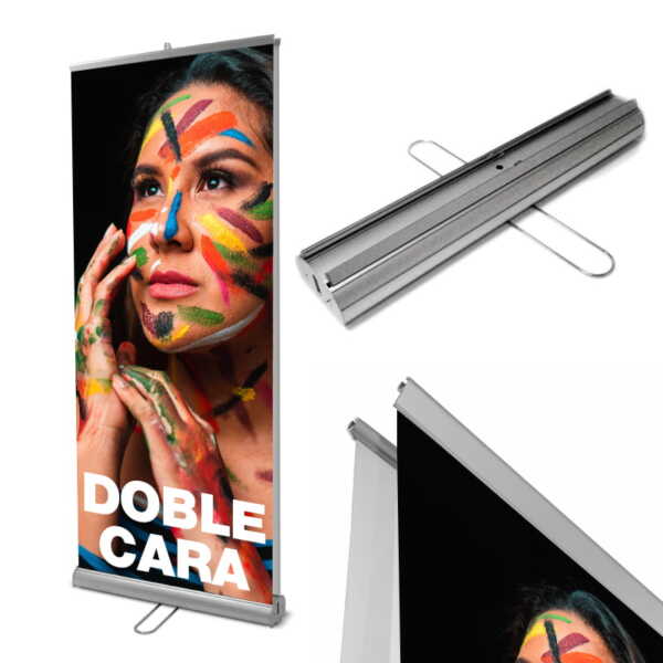 Realizamos la impresión sobre lona ó polipropileno que se enrolla en una estructura de aluminio de poco peso. El montaje se realiza en menos de 1 minuto. La calidad de impresión es realmente asombrosa ya que utilizamos nuestros plotters de impresión tinta UV de última generación con 7 colores sobre materiales con acabado mate y/o satinado lo que evita los reflejos muy molestos. El material impreso no curva.