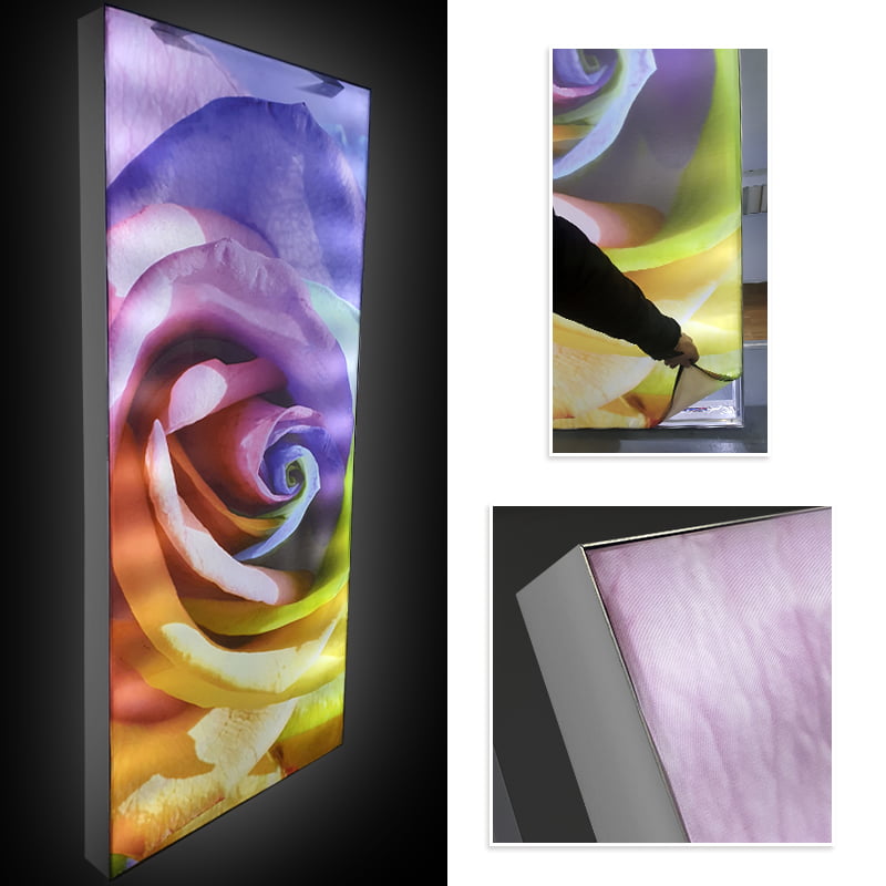 Pensado especialmente para decoración en interior de negocios, tiendas, centros comerciales ya que se puede cambiar la gráfica en menos de 5 minutos.