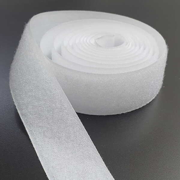 Está compuesto por 2 partes: una tira suave y otra de gancho que se unen.