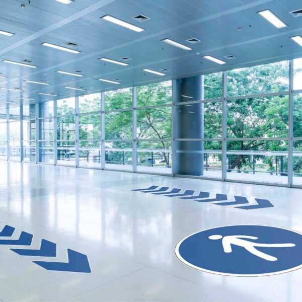 Convierte cualquier espacio (pabellones deportivos, estación de autobuses, trenes, aeropuertos, farmacias, museos, centros comerciales, bancos, señalética para fábricas, industrias, eventos y ferias) en un llamativo reclamo publicitario con nuestros vinilos decorativos para suelos.